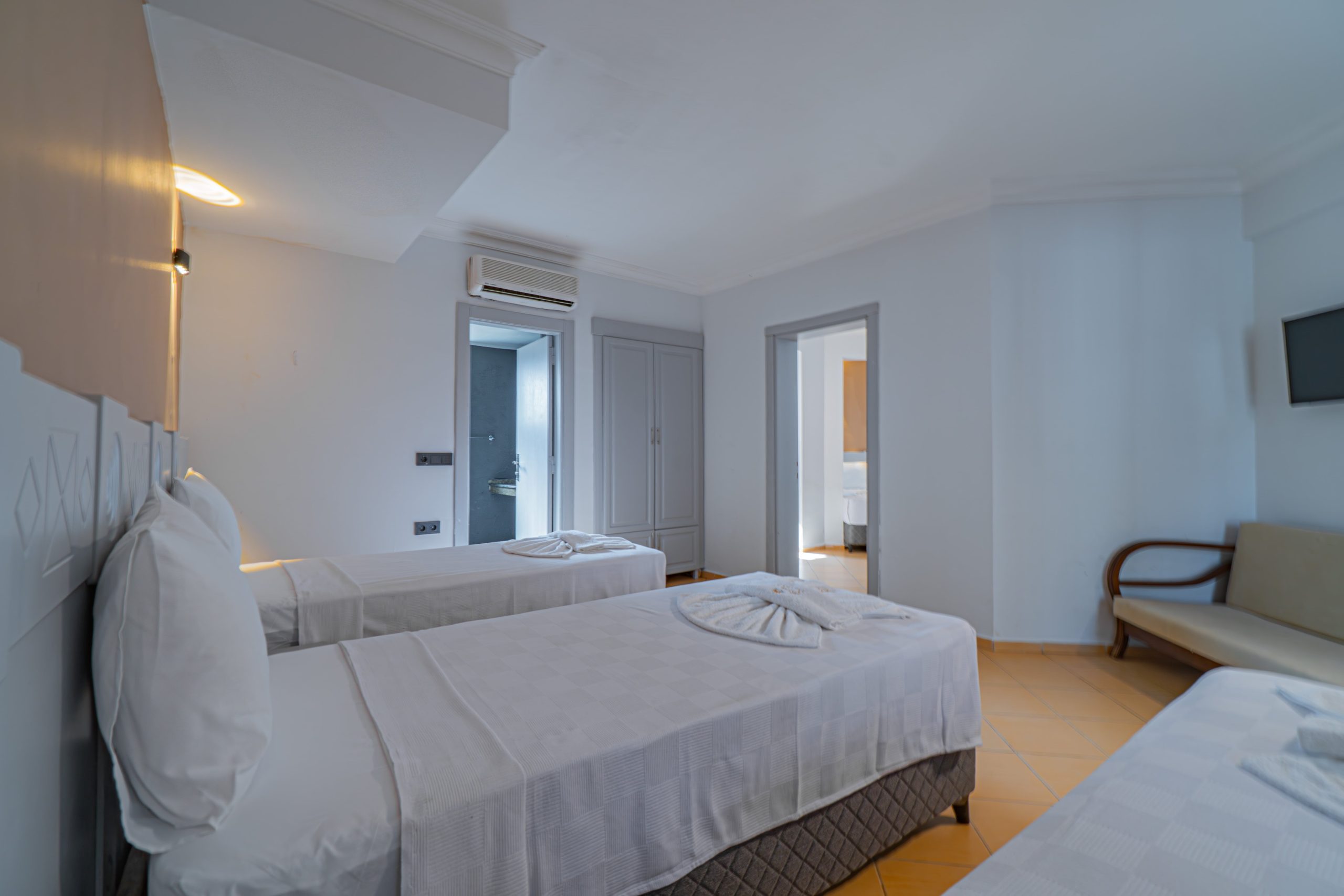 Geniş ve ferah yapısıyla Aile Odalarımız, sevdiklerinizle birlikte rahat ve keyifli bir konaklama deneyimi sunar. Ailelerin ihtiyaçları düşünülerek tasarlanan bu odalar; konforlu yatak düzeni ve işlevsel yaşam alanlarıyla herkes için huzurlu bir tatil ortamı sağlar.
